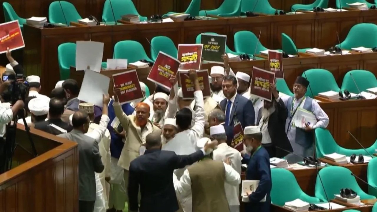 ত্রয়োদশ জাতীয় সংসদের প্রথম অধিবেশনে রাষ্ট্রপতি মো. সাহাবুদ্দিনের ভাষণ শুরু হওয়ার সঙ্গে সঙ্গে সংসদে হইচই শুরু হয়। বিরোধী দল জামায়াতের সংসদ সদস্যরা হাতে প্ল্যাকার্ড নিয়ে দাঁড়িয়ে প্রতিবাদ জানান। প্ল্যাকার্ডে লেখা ছিল – ‘জুলাই নিয়ে গাদ্দারি চলবে না’, ‘জুলাইয়ের সঙ্গে বিশ্বাসঘাতকতা বন্ধ কর’।