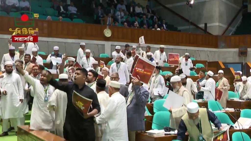 ত্রয়োদশ জাতীয় সংসদের প্রথম অধিবেশনে রাষ্ট্রপতি মো. সাহাবুদ্দিনের ভাষণ শুরু হওয়ার সঙ্গে সঙ্গে সংসদে হইচই শুরু হয়। বিরোধী দল জামায়াতের সংসদ সদস্যরা হাতে প্ল্যাকার্ড নিয়ে দাঁড়িয়ে প্রতিবাদ জানান। প্ল্যাকার্ডে লেখা ছিল – ‘জুলাই নিয়ে গাদ্দারি চলবে না’, ‘জুলাইয়ের সঙ্গে বিশ্বাসঘাতকতা বন্ধ কর’। স্পিকার হাফিজ উদ্দিন সবাইকে শান্ত থাকার আহ্বান জানান। রাষ্ট্রপতির বক্তব্য চলাকালে প্রধানমন্ত্রী ও […]